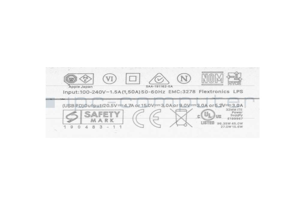 Apple A3241 EMC 8782 Original USB-C Netzteil 96,0 Watt EU Wallplug weiß