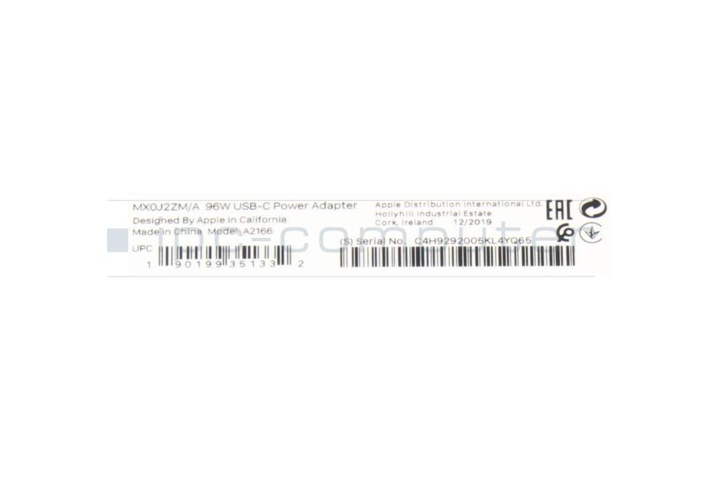 Apple Mac14,2 (13" 2022) Original USB-C Netzteil 96,0 Watt EU Wallplug weiß