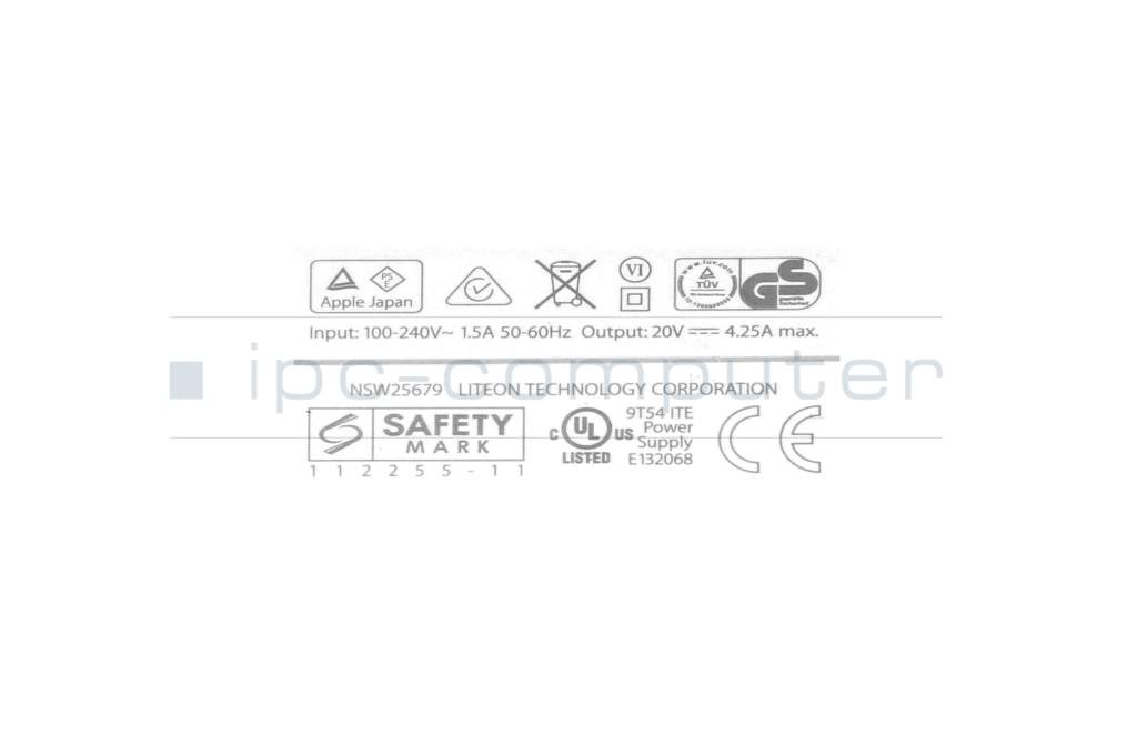 Apple MacBookAir4,2 (13", Mid 2011) Original Netzteil 85,0 Watt weiß