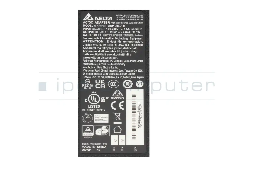 Garantie: 24 Monate IPC-Computer Garantie auf alle von IPC-Computer in Verkehr gebrachten DELTA Netzteile.