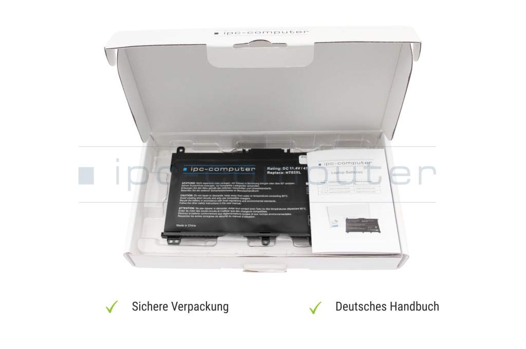 Achtung: HT03XL 3 Zellen Akku - In der Modellreihe HP 15-cs1000, 15-cs2000, 15-cs3000 werden je nach Ausstattung Akkus mit unterschiedlicher Bauform verbaut. Vergewissern sie sich bitte vor Kauf, dass es sich bei Ihrem Akku um das Modell HT03XL handelt. Dieser hier angebotene Akku kann nicht als Alternative zu dem HP Akku LG04XL verwendet werden!