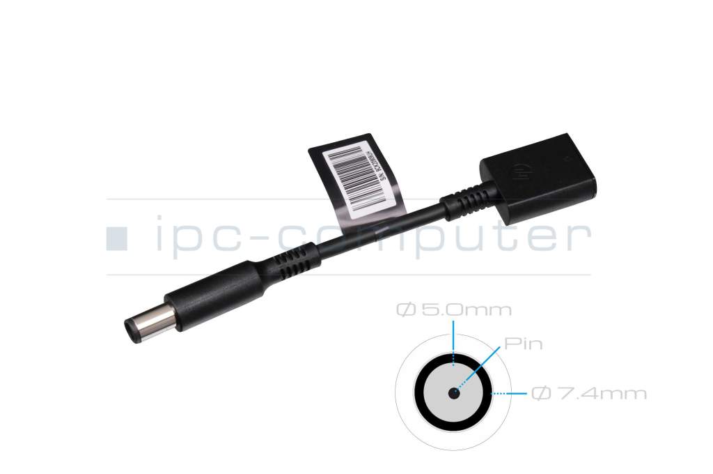 • Adapter: Ein wesentliches Merkmal ist der mitgelieferte Konvertierungs-Dongle (Adapter), der den 4,5-mm-Anschluss in einen größeren 7,4-mm-DC-Stecker (ebenfalls mit Pin) umwandelt, wodurch das Netzteil mit einer breiteren Palette von älteren und neueren HP Notebooks und anderen kompatiblen Geräten verwendet werden kann.