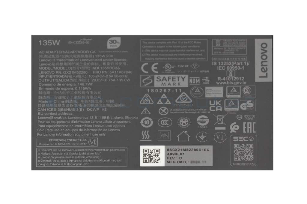 Lenovo ThinkCentre M70q Gen 3 (11X2) Original Netzteil 135,0 Watt flache Bauform