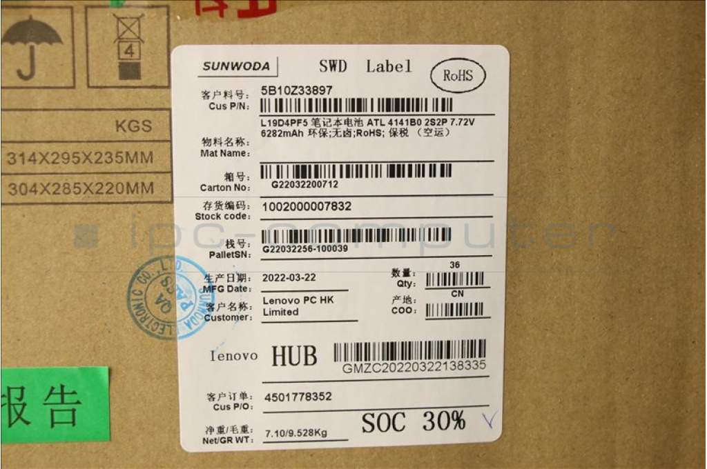 Lenovo 5B10Z33897 BATTERY SD/A L19D4PF5 7.72V 50Wh4cell