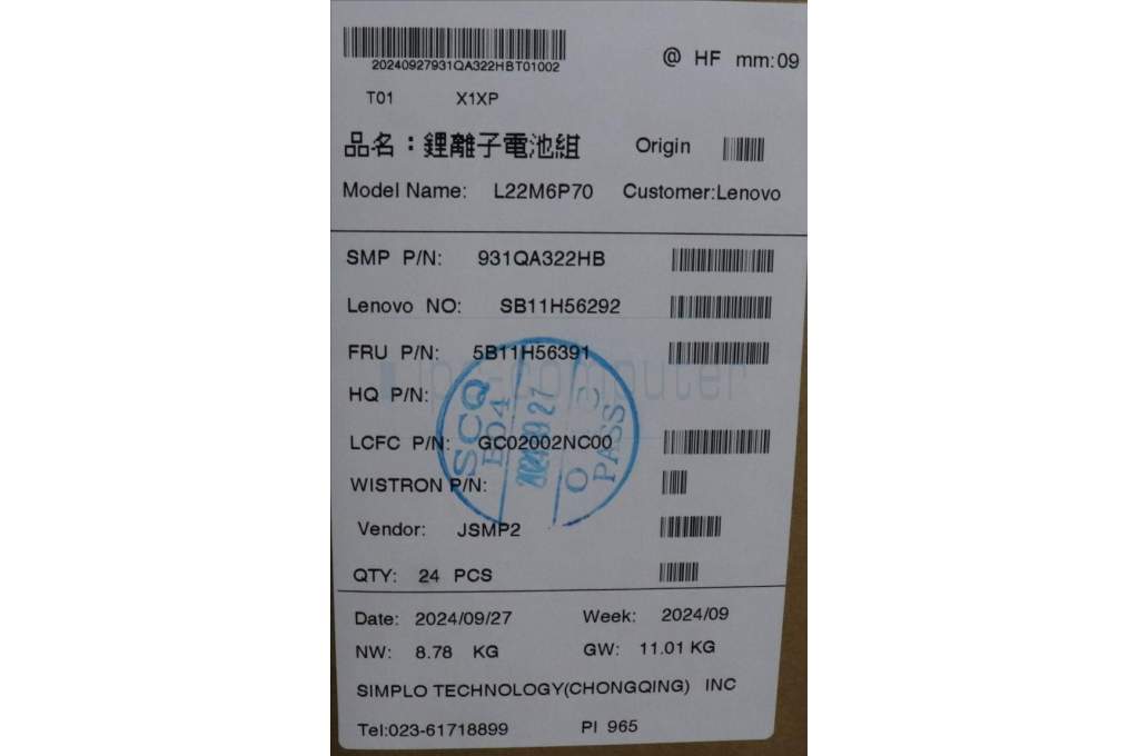 Lenovo 5B11H56391 BATTERY Internal, 6c 94Wh, LiIon, SMP