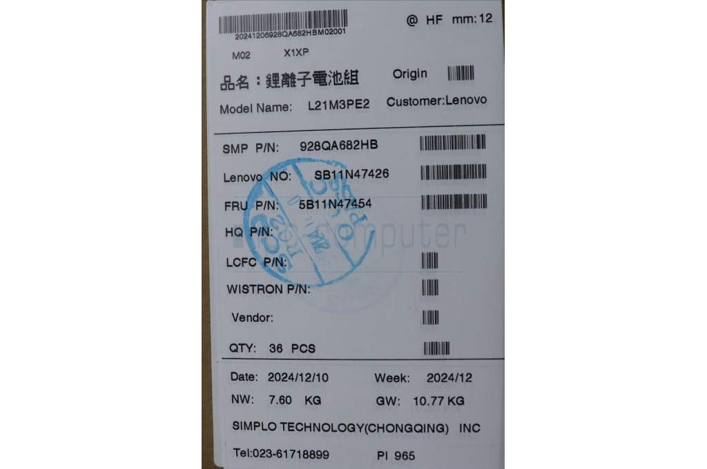 Lenovo 5B11N47454 BATTERY 3cell 59Wh 11.64V L21M3PE2 SP/A