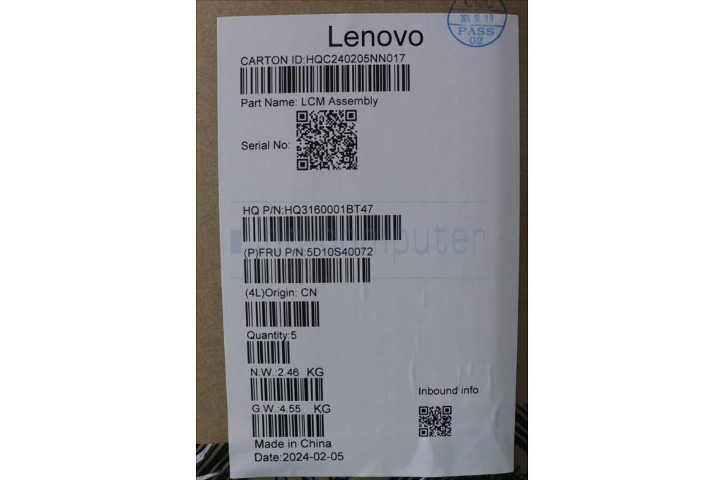 Lenovo 5D10S40072 Lenovo LCD Module,14",HD,Touch,Glare,IPS,300nit,45% NTSC