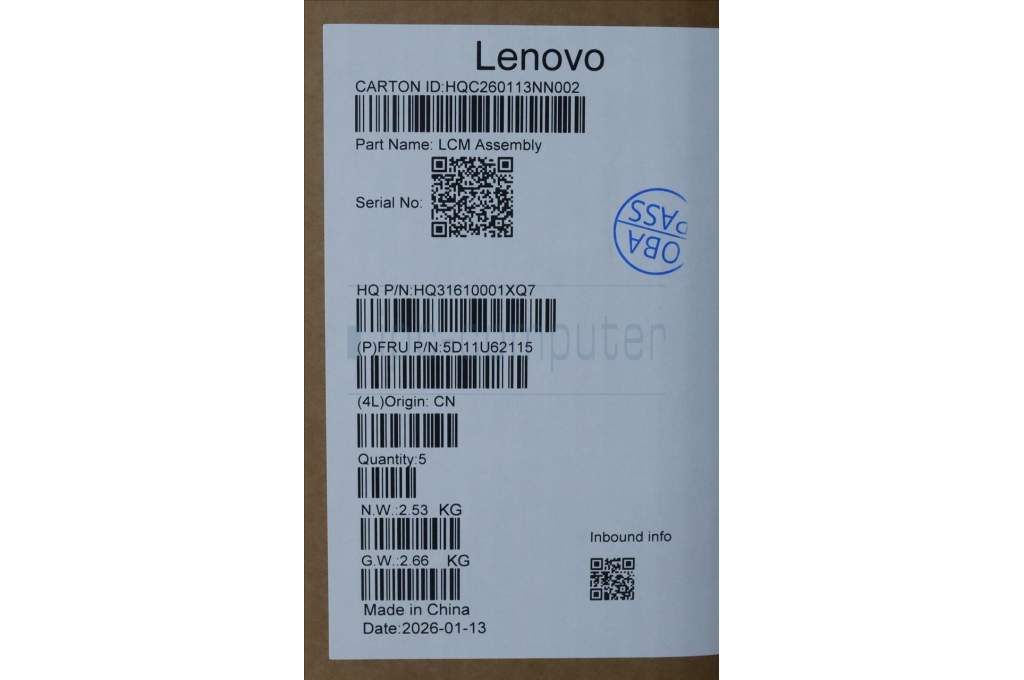 Lenovo 5D11U62115 Lenovo LCD Module, 15.3", WUXGA, Non-Touch, Anti-Glare, IPS, 300nit, 100%SRGB, Color Calibration