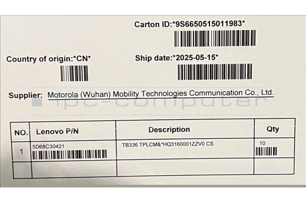 Lenovo 5D68C30421 TB336 TPLCM&*HQ3160001ZZV0 CS
