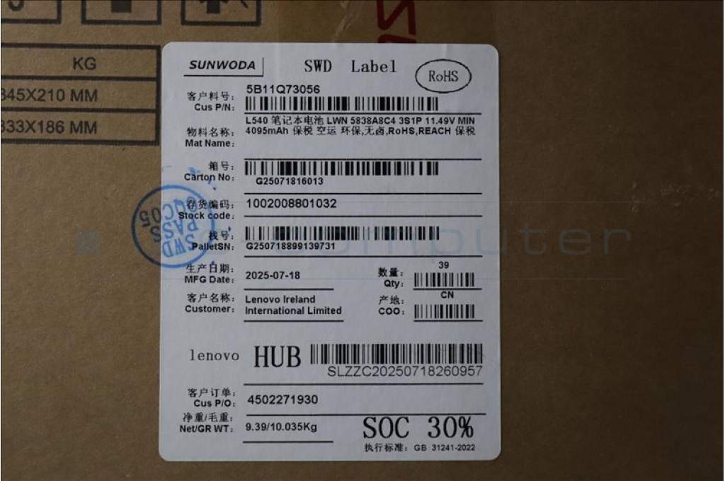 Lenovo 5B11Q73056 Lenovo BATTERY, 11.49V, 48Wh, 3cell