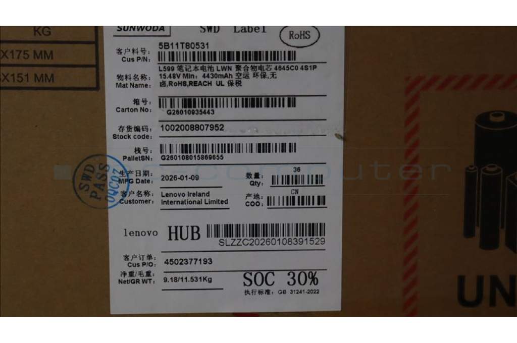 Lenovo 5B11T80531 Lenovo BATTERY, 15.48V, 70Wh, 4cell
