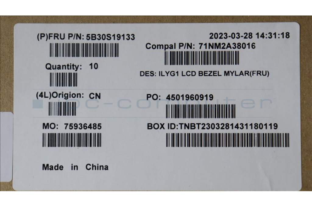Lenovo 5B30S19133 LCD Bezel Mylar C 82Y3 w/tape