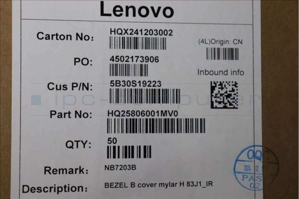 Lenovo 5B30S19223 BEZEL B cover mylar H 83J1_IR