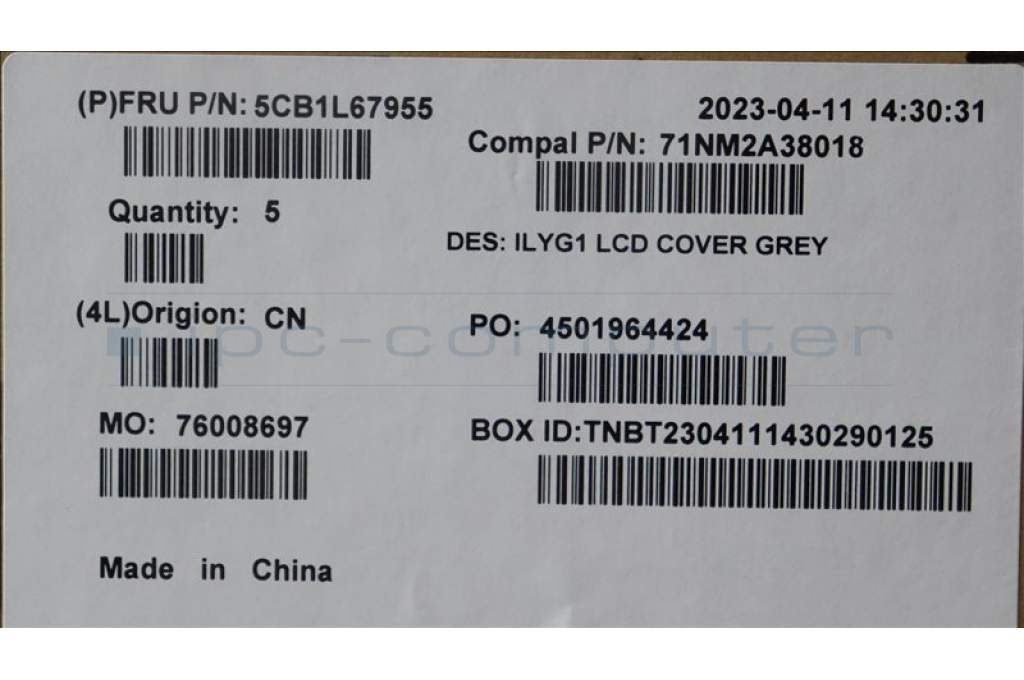 Lenovo 5CB1L67955 LCD Cover C 82Y3 Grey