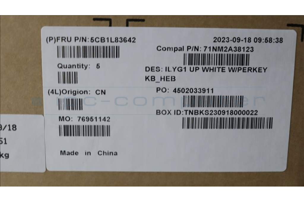 Lenovo 5CB1L83642 C-Cover with keyboard, Hebrew, White, RGB Backlight, US