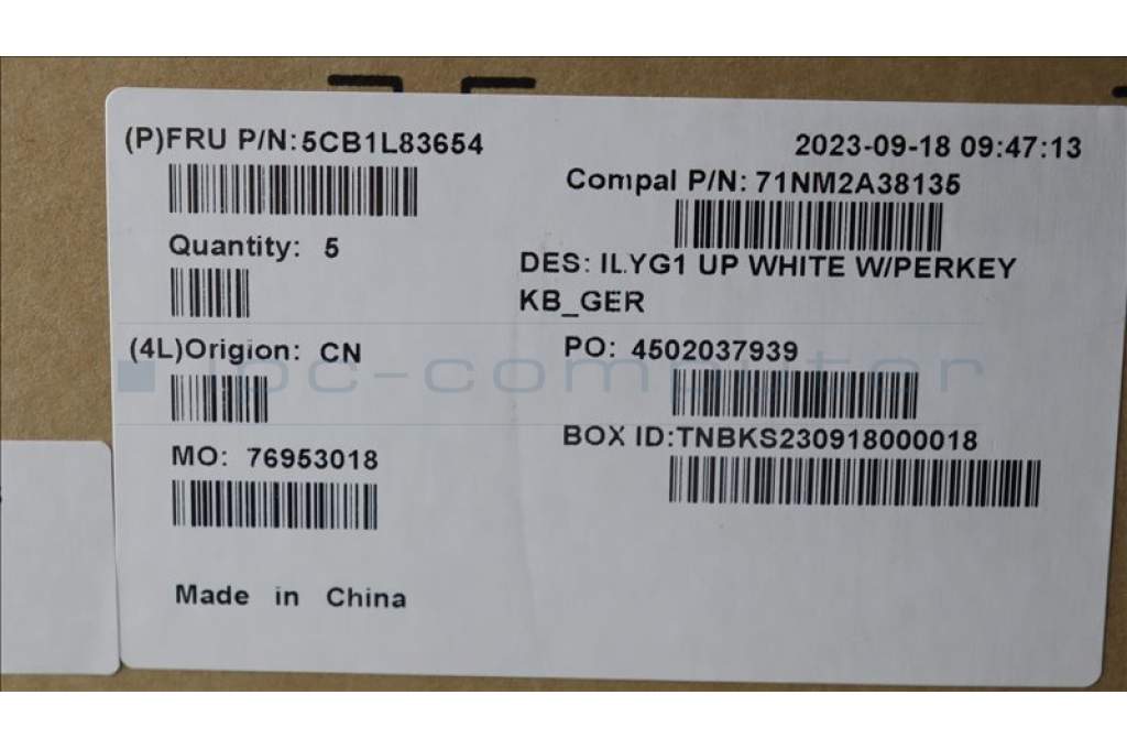 Lenovo 5CB1L83654 C-Cover with keyboard, German, White, RGB Backlight, UK