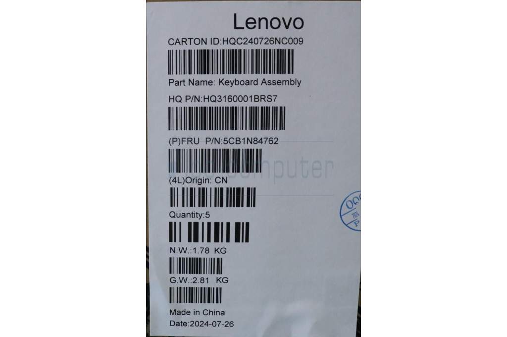 Lenovo 5CB1N84762 C-Cover with keyboard, US English Euro, Tidal Teal, w/puresight pro logo, US
