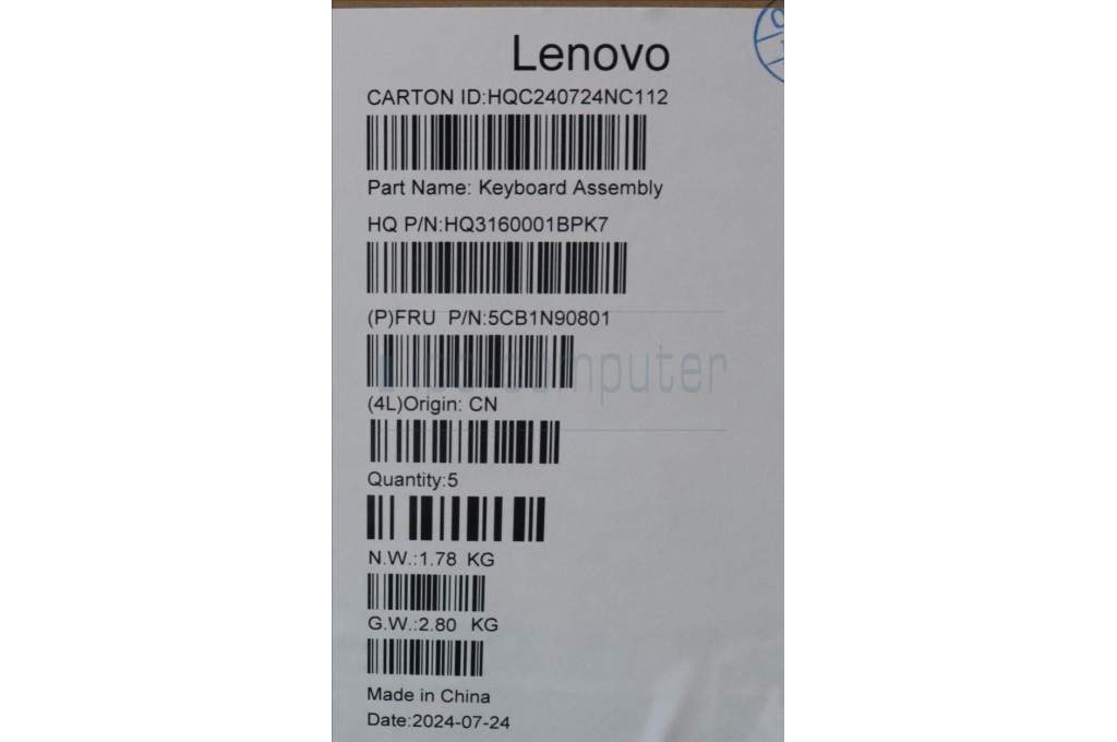 Lenovo 5CB1N90801 C-Cover with keyboard, Spanish, Luna Grey, w/puresight pro logo, UK