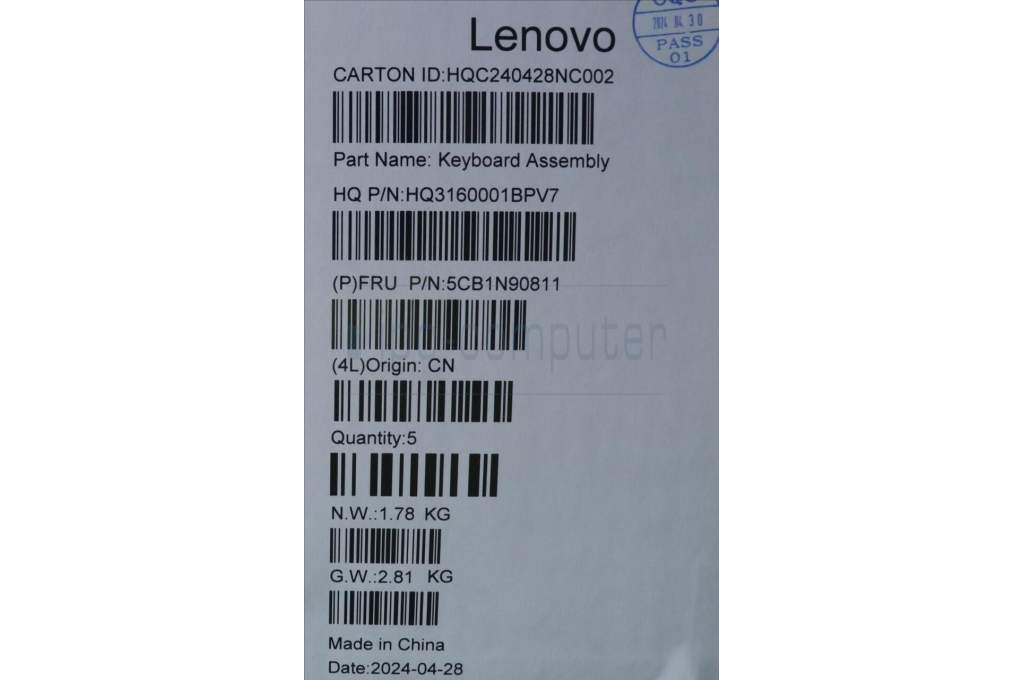 Lenovo 5CB1N90811 C-Cover with keyboard, UK English, Luna Grey, w/puresight pro logo, UK