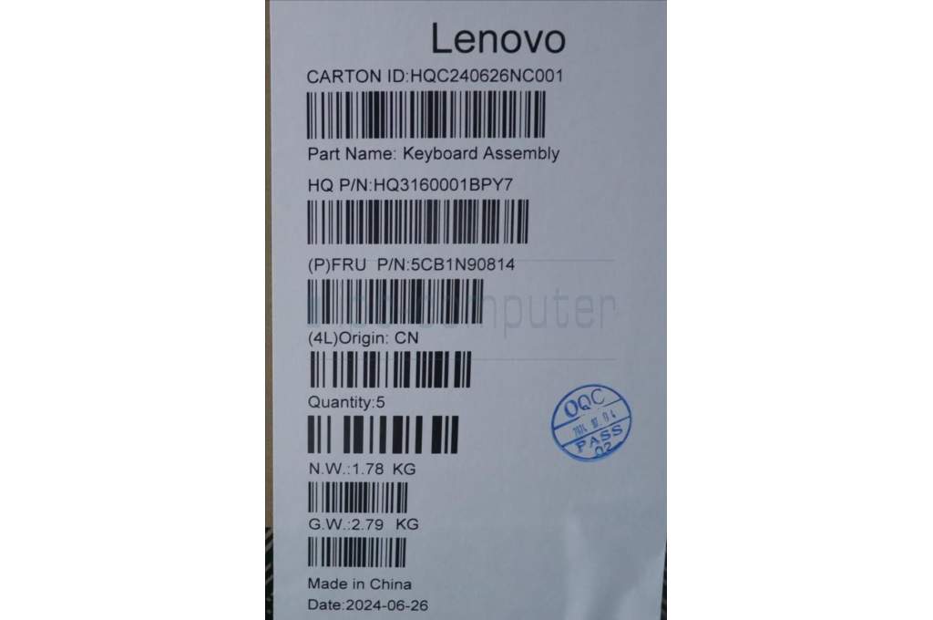 Lenovo 5CB1N90814 C-Cover with keyboard, Ukraine, Luna Grey, US