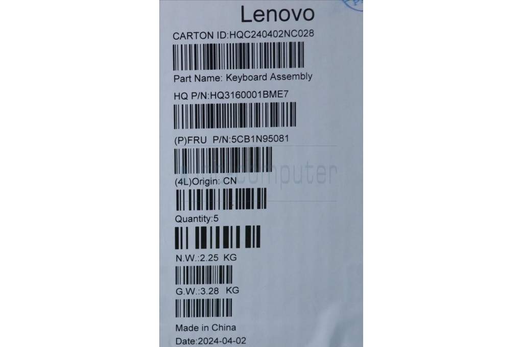 Lenovo 5CB1N95081 C-Cover with keyboard, Hebrew, Luna Grey, Fingerprint, US