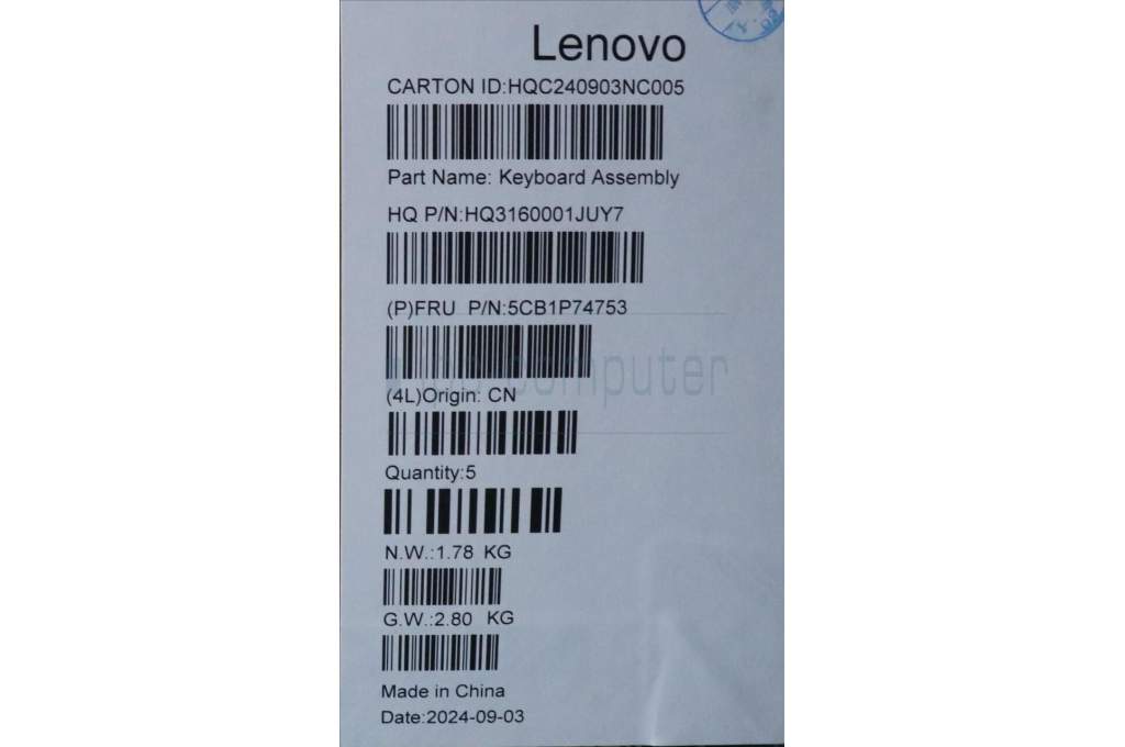 Lenovo 5CB1P74753 C-Cover with keyboard, US English Euro, Luna Grey, Puresight Logo, US