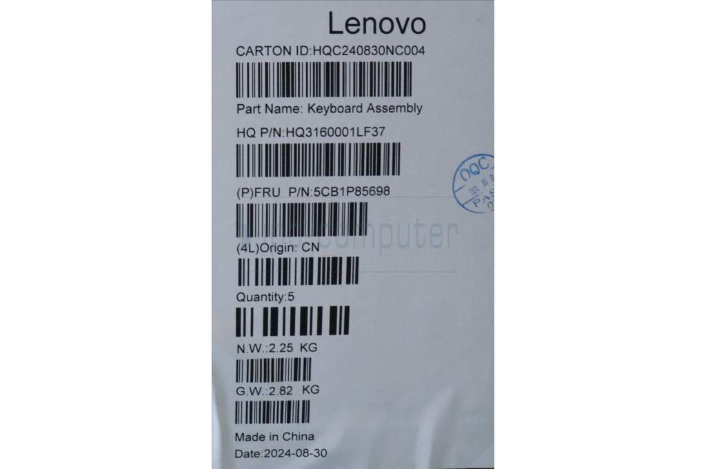 Lenovo 5CB1P85698 C-Cover with keyboard, English, Luna Grey, FingerPrint, US
