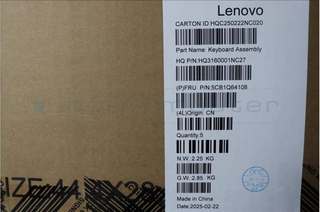 Lenovo 5CB1Q64108 C-Cover with keyboard, Switzerland, Luna Grey, Non-Backlight, UK