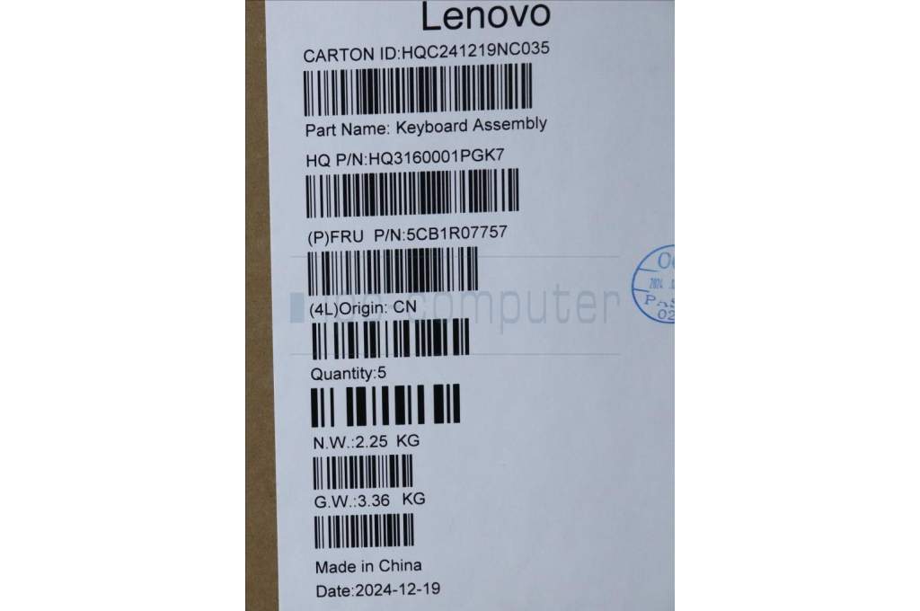 Lenovo 5CB1R07757 C-Cover with keyboard, UK English, Luna Grey, Backlight, 3CELL, UK