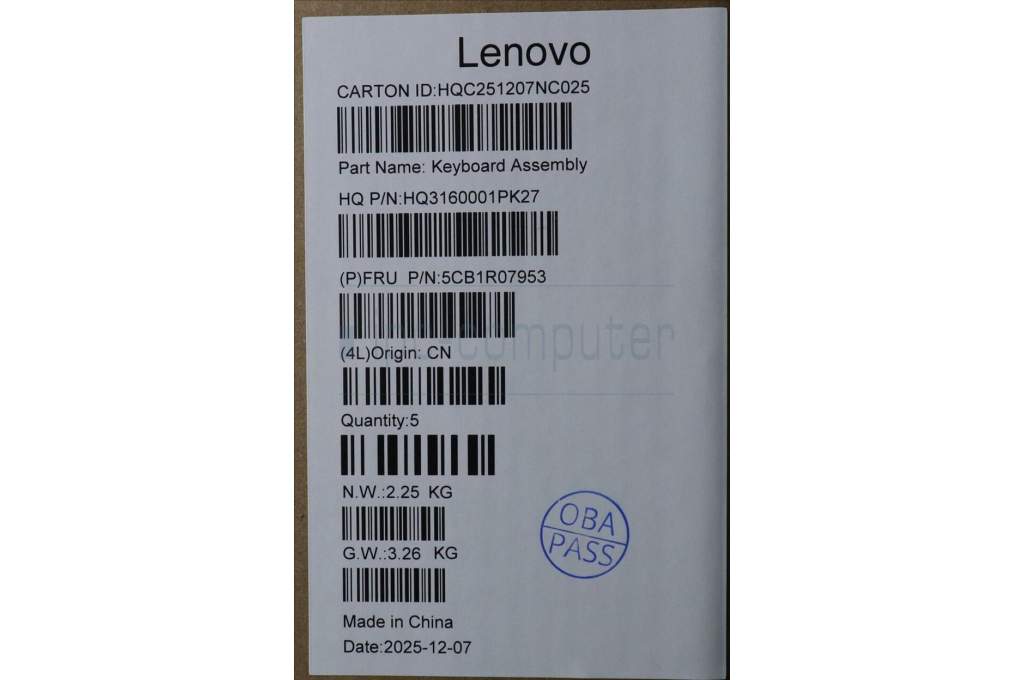 Lenovo 5CB1R07953 C-Cover with keyboard, Spanish, Luna Grey, Non-Backlight, 4CELL, UK
