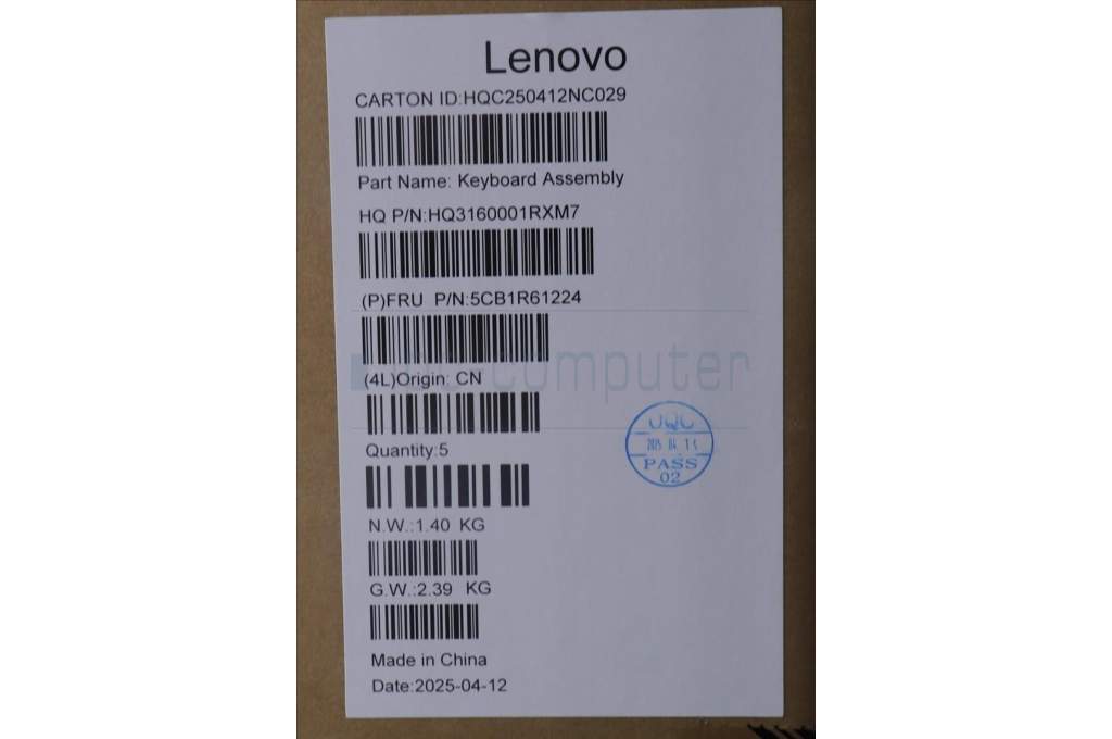 Lenovo 5CB1R61224 C-Cover with keyboard, Italian, Luna Grey, FingerPrint, Puresight Logo, UK