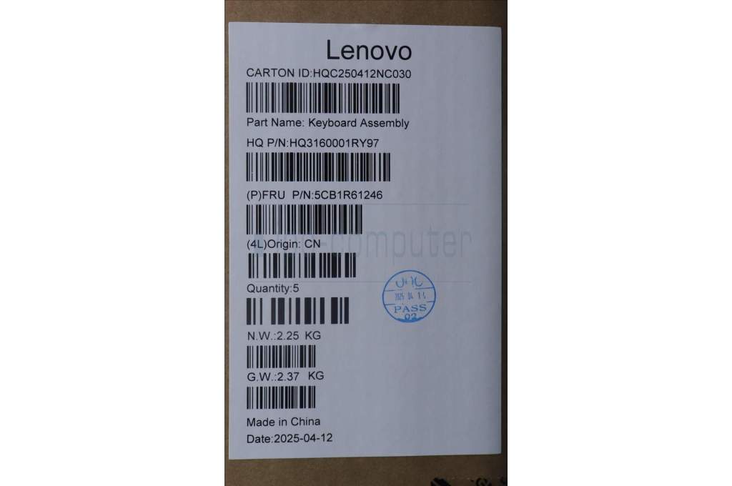 Lenovo 5CB1R61246 C-Cover with keyboard, Belgian, Luna Grey, FingerPrint, Puresight Logo, UK