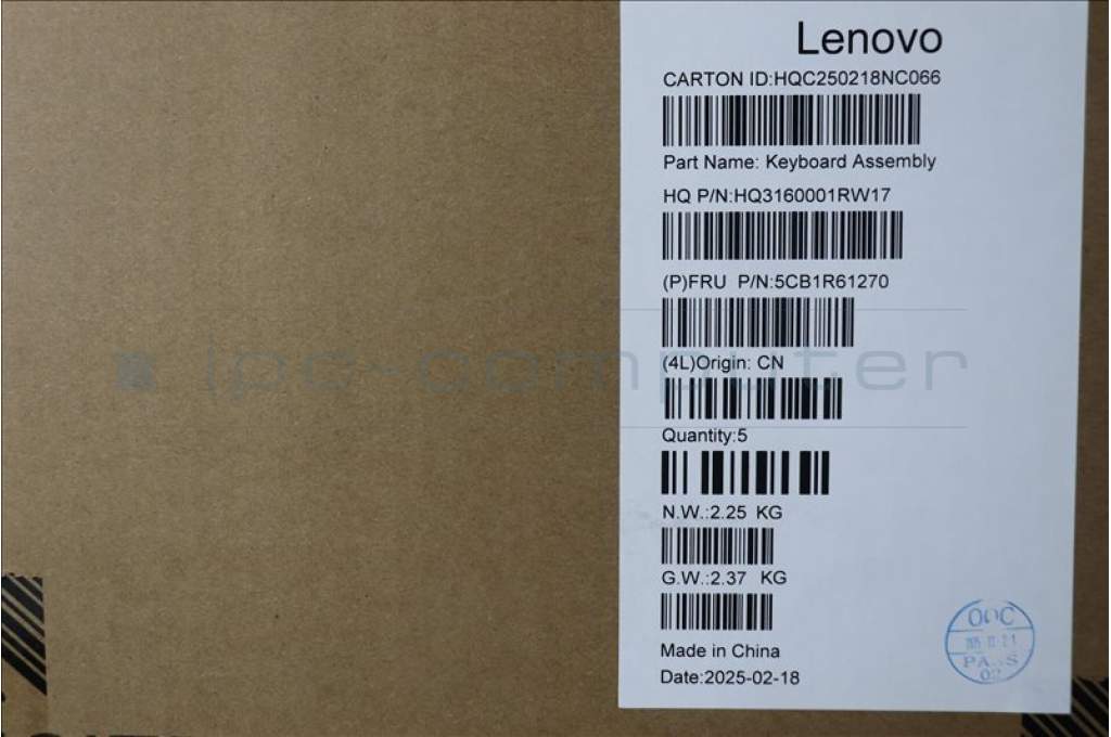 Lenovo 5CB1R61270 C-Cover with keyboard, UK English, Luna Grey, Non-FingerPrint, Puresight Logo, UK