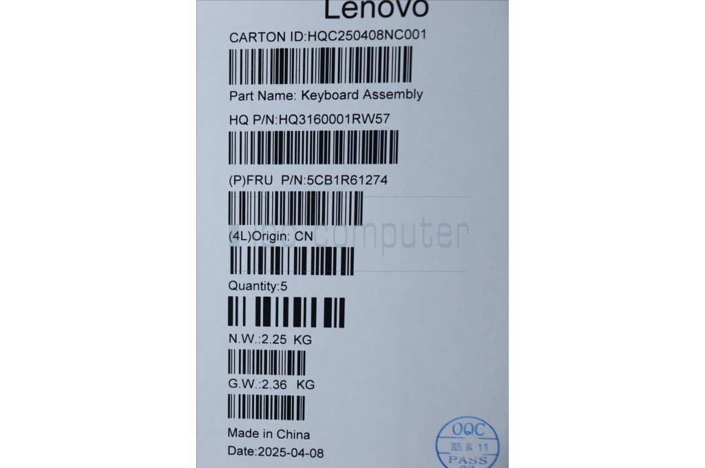 Lenovo 5CB1R61274 C-Cover with keyboard, Bulgarian, Luna Grey, Non-FingerPrint, Puresight Logo, UK