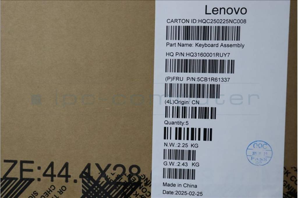 Lenovo 5CB1R61337 C-Cover with keyboard, Czech Slovakian, Seashell, Non-FingerPrint, Puresight Logo, UK