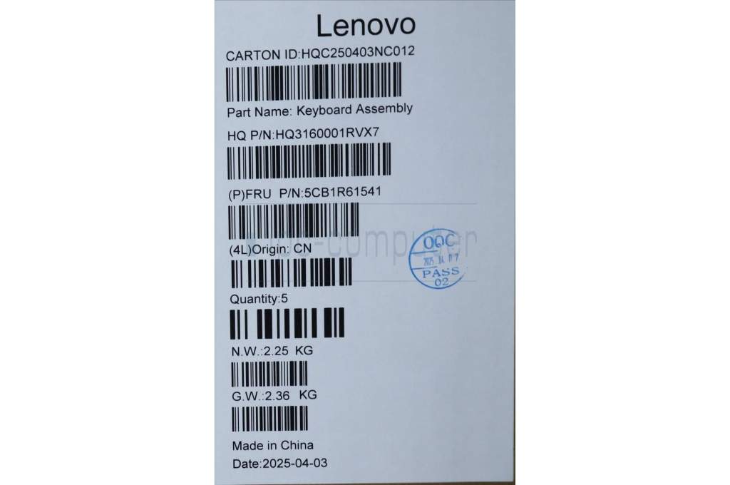 Lenovo 5CB1R61541 C-Cover with keyboard, Belgian, Luna Grey, FingerPrint, Non-Puresight Logo, UK