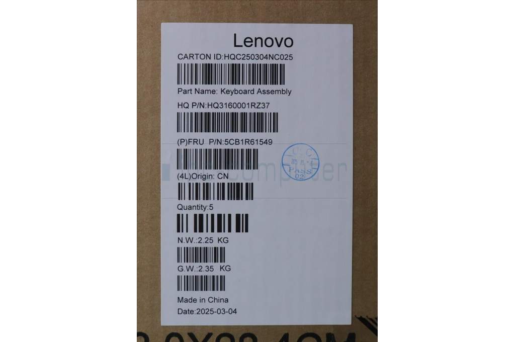 Lenovo 5CB1R61549 C-Cover with keyboard, Italian, Luna Grey, Non-FingerPrint, Non-Puresight Logo, UK