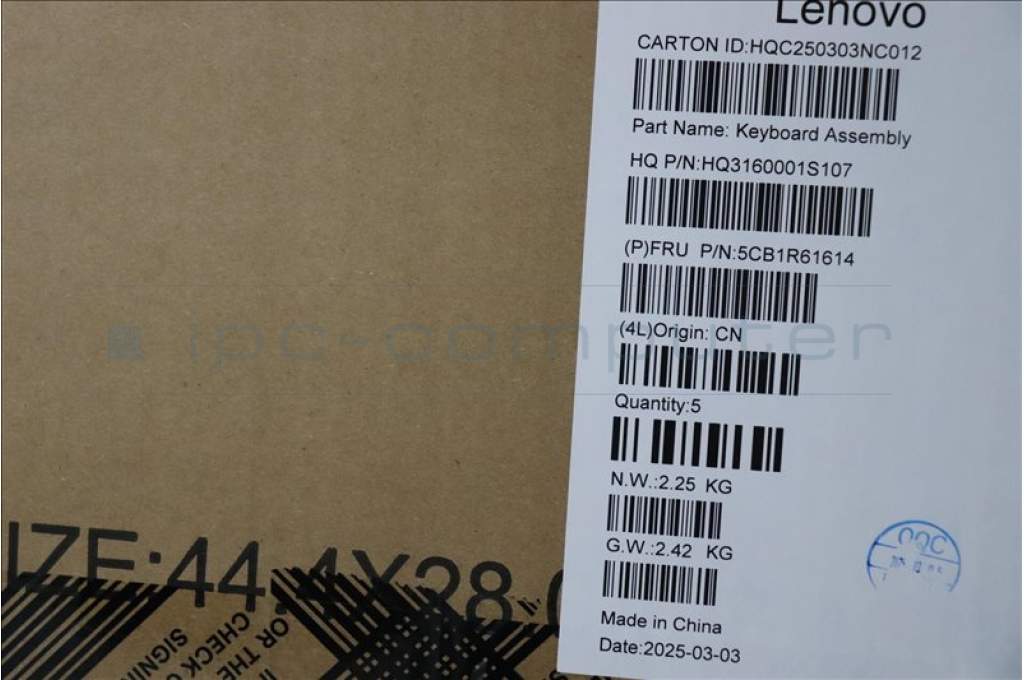 Lenovo 5CB1R61614 C-Cover with keyboard, German, Seashell, Non-FingerPrint, Non-Puresight Logo, UK
