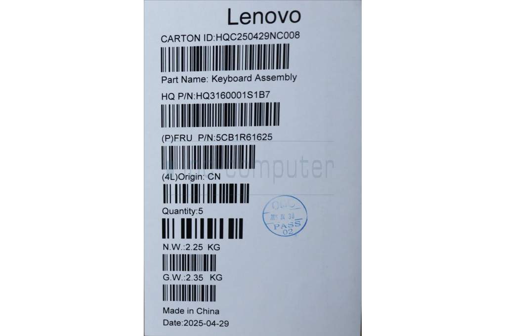 Lenovo 5CB1R61625 C-Cover with keyboard, UK English, Seashell, Non-FingerPrint, Non-Puresight Logo, UK