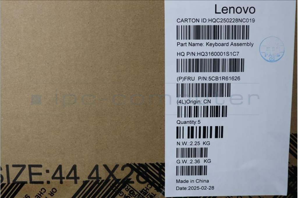 Lenovo 5CB1R61626 C-Cover with keyboard, English, Seashell, Non-FingerPrint, Non-Puresight Logo, US