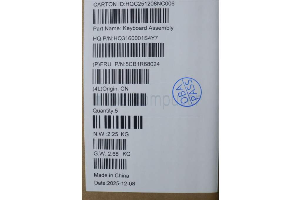 Lenovo 5CB1R68024 C-Cover with keyboard, UK English, Luna Grey, Non-Puresight Logo, FingerPrint, UK
