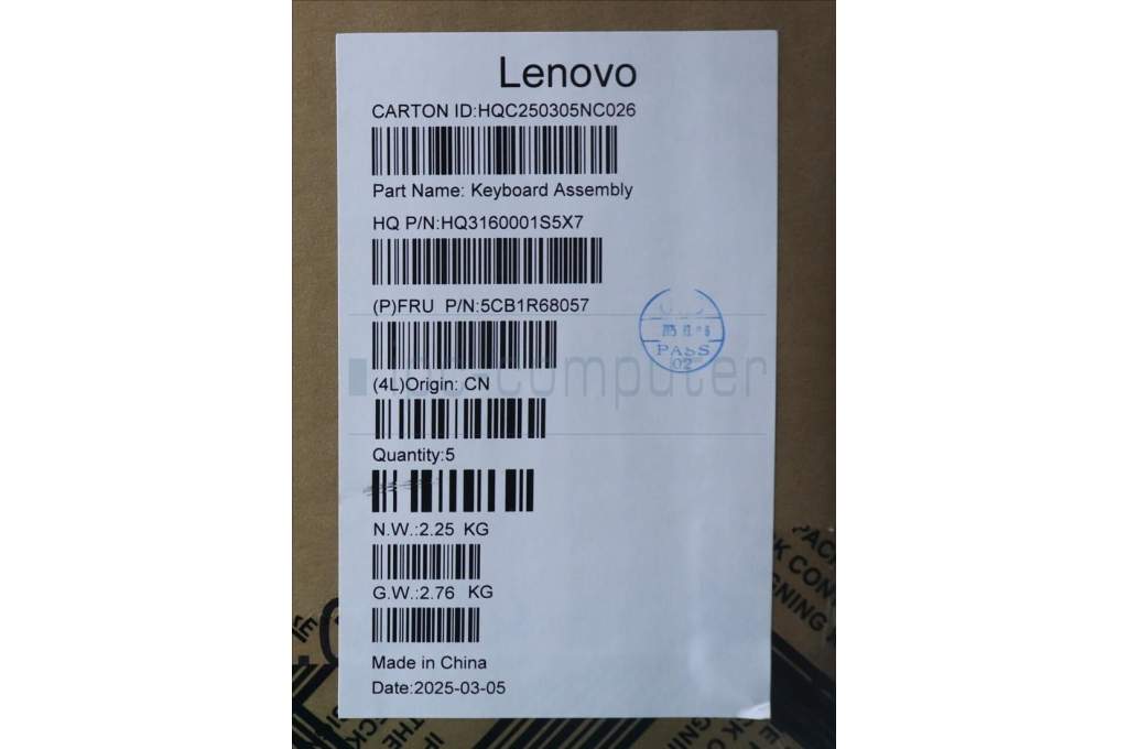 Lenovo 5CB1R68057 C-Cover with keyboard, Hebrew, Luna Grey, Puresight Logo, Non-FingerPrint, US