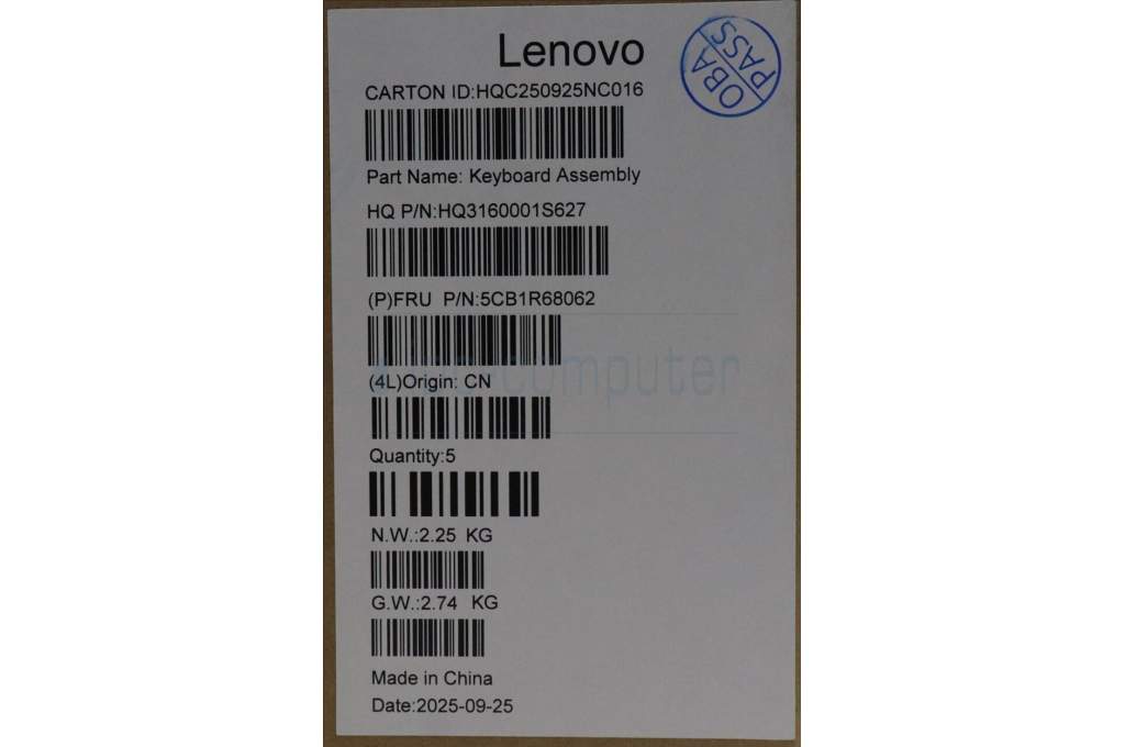 Lenovo 5CB1R68062 C-Cover with keyboard, German, Luna Grey, Non-Puresight Logo, Non-FingerPrint, UK