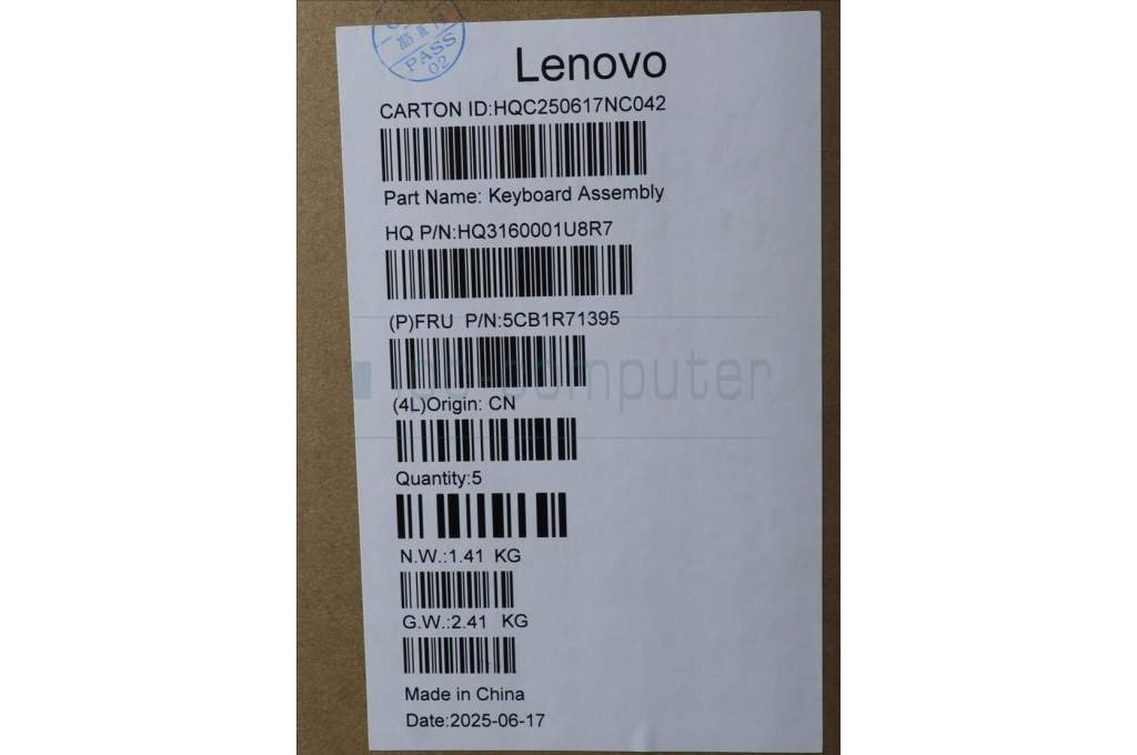 Lenovo 5CB1R71395 C-Cover with keyboard, US English Euro, Tidal Teal, Non-FingerPrint, Non-Puresight Logo, US