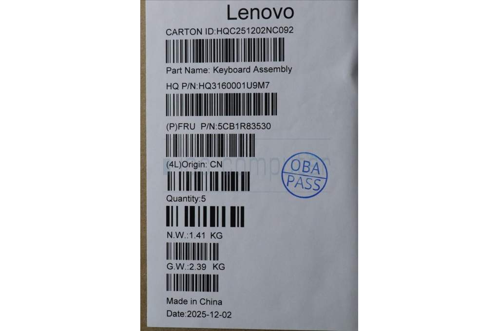 Lenovo 5CB1R83530 C-Cover with keyboard, US English Euro, Seashell, FingerPrint, Non-Puresight Logo, US