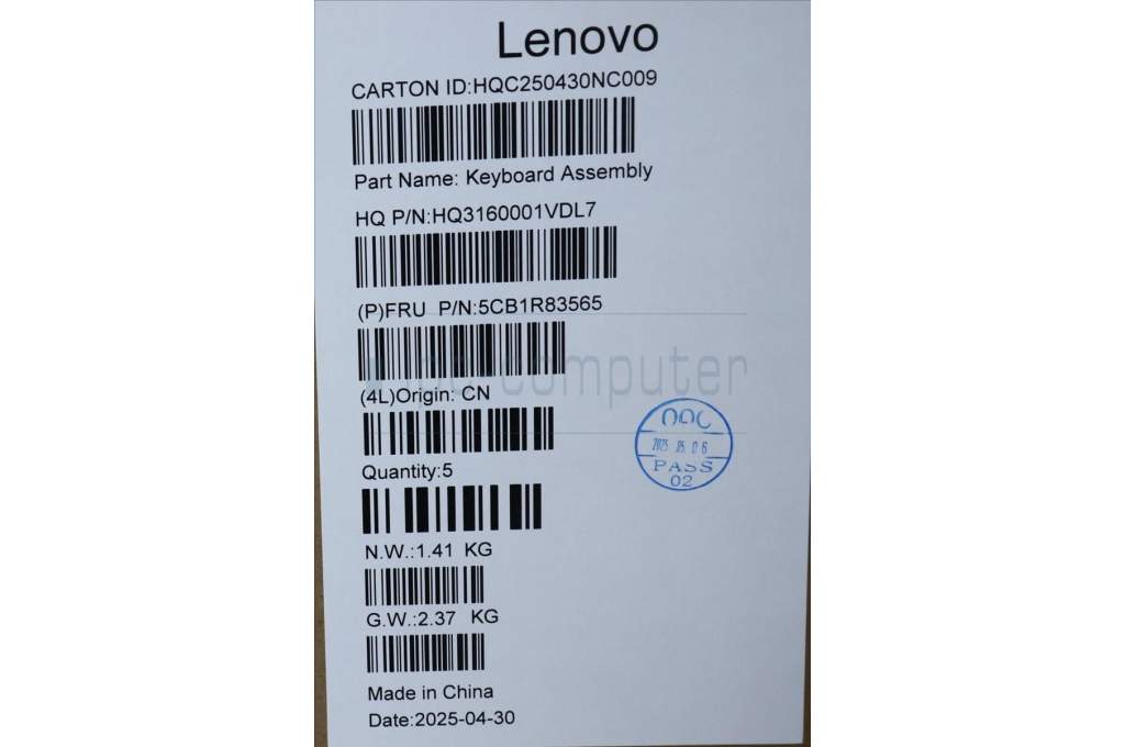 Lenovo 5CB1R83565 C-Cover with keyboard, Belgian, Seashell, Non-FingerPrint, Non-Puresight Logo, UK
