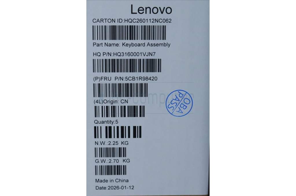 Lenovo 5CB1R98420 C-Cover with keyboard, Italian, Seashell, FingerPrint, Non-Puresight Logo, UK