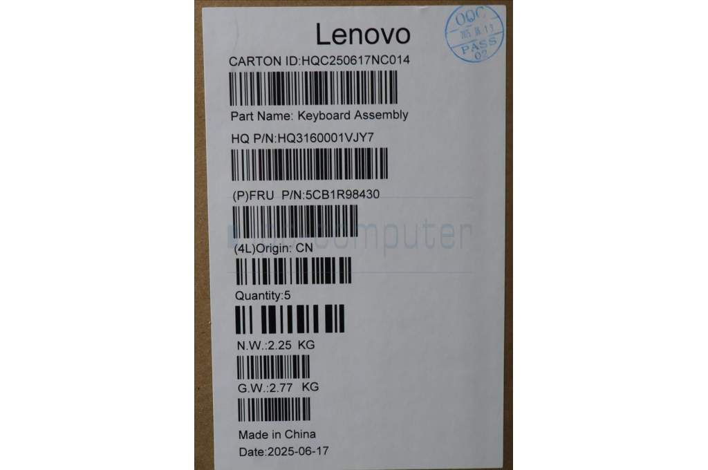 Lenovo 5CB1R98430 C-Cover with keyboard, German, Seashell, FingerPrint, Non-Puresight Logo, UK