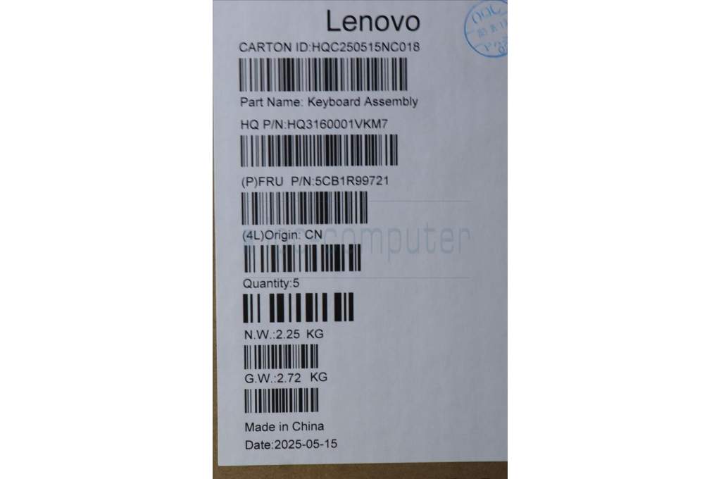 Lenovo 5CB1R99721 C-Cover with keyboard, US English Euro, Seashell, FingerPrint, Puresight Logo, US