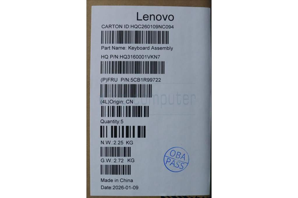 Lenovo 5CB1R99722 C-Cover with keyboard, US English Euro, Seashell, FingerPrint, Non-Puresight Logo, US